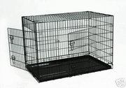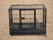 HEAVY DUTY PROFESSIONAL GRADE CRATES ALL OF THESE CRATES HAVE A 3/4 INCH FRAME MADE OF 20 GAUGE STEEL. ALL SIZES HAVE A FRONT DOOR, TOP DOOR, AND REMOVABLE WHEELS. ALL CRATES CAN BE FOLDED FOR EASY MOBILITY! COMES WITH 1/4 IN FLOOR GRATE & REMOVABLE WASTE PAN. CRATES CAN BE ASSEMBLED IN LESS THAN FIVE MINUTES! LESS MESS & LESS VET BILLS DUE TO PUPS STEPPING IN FECES & URINE! |
